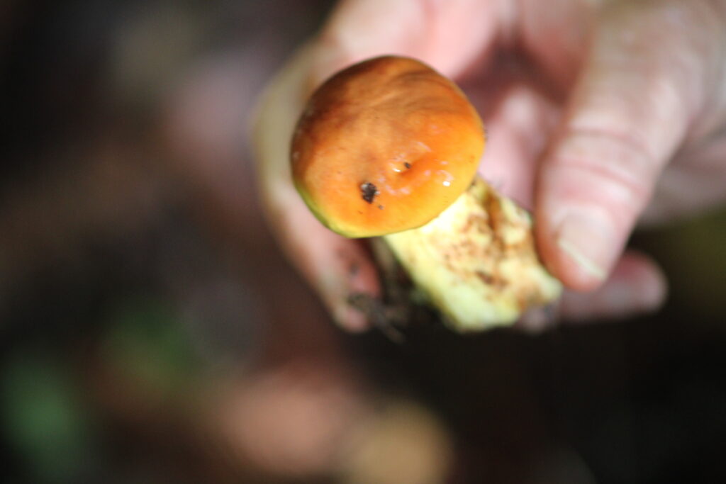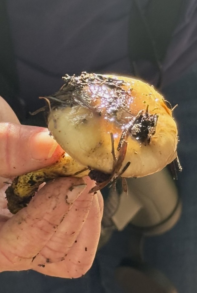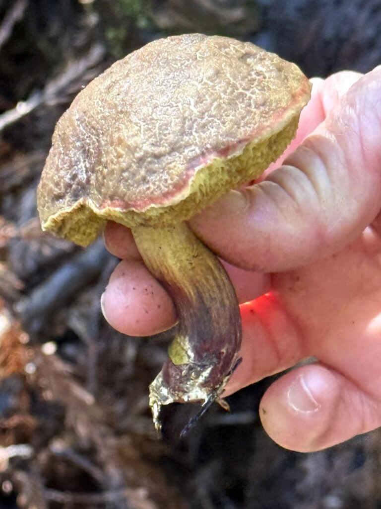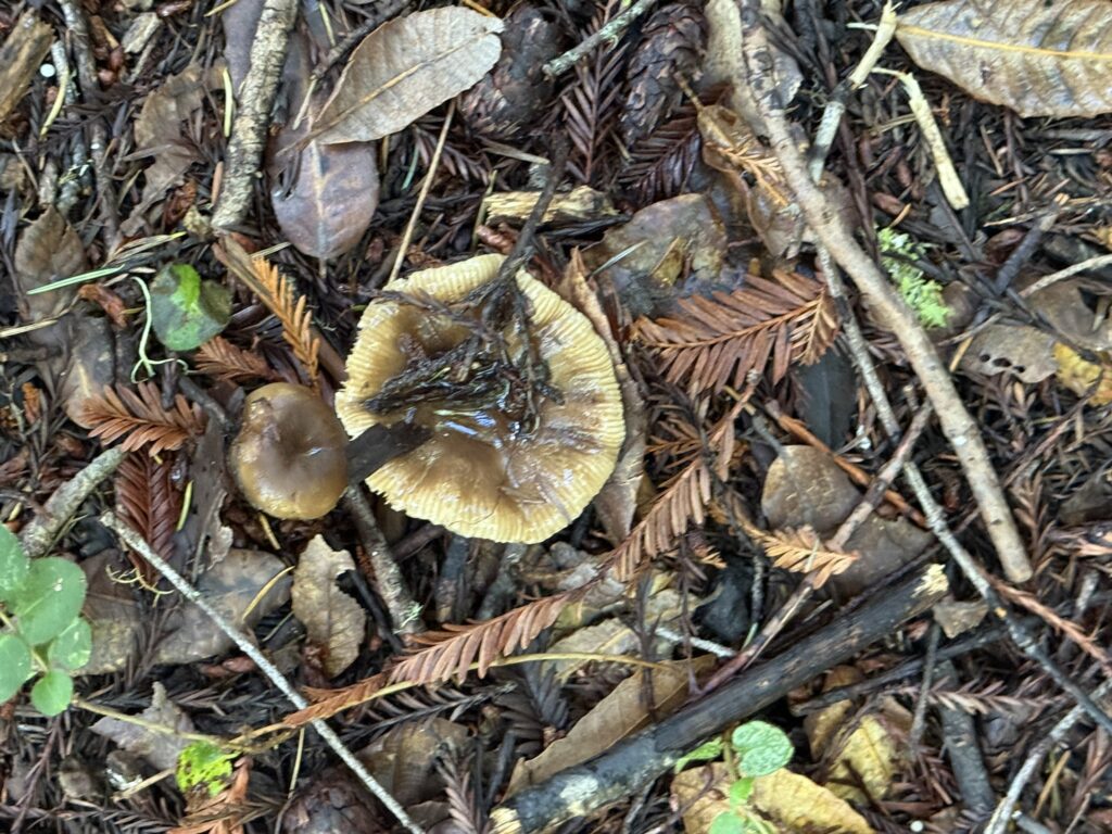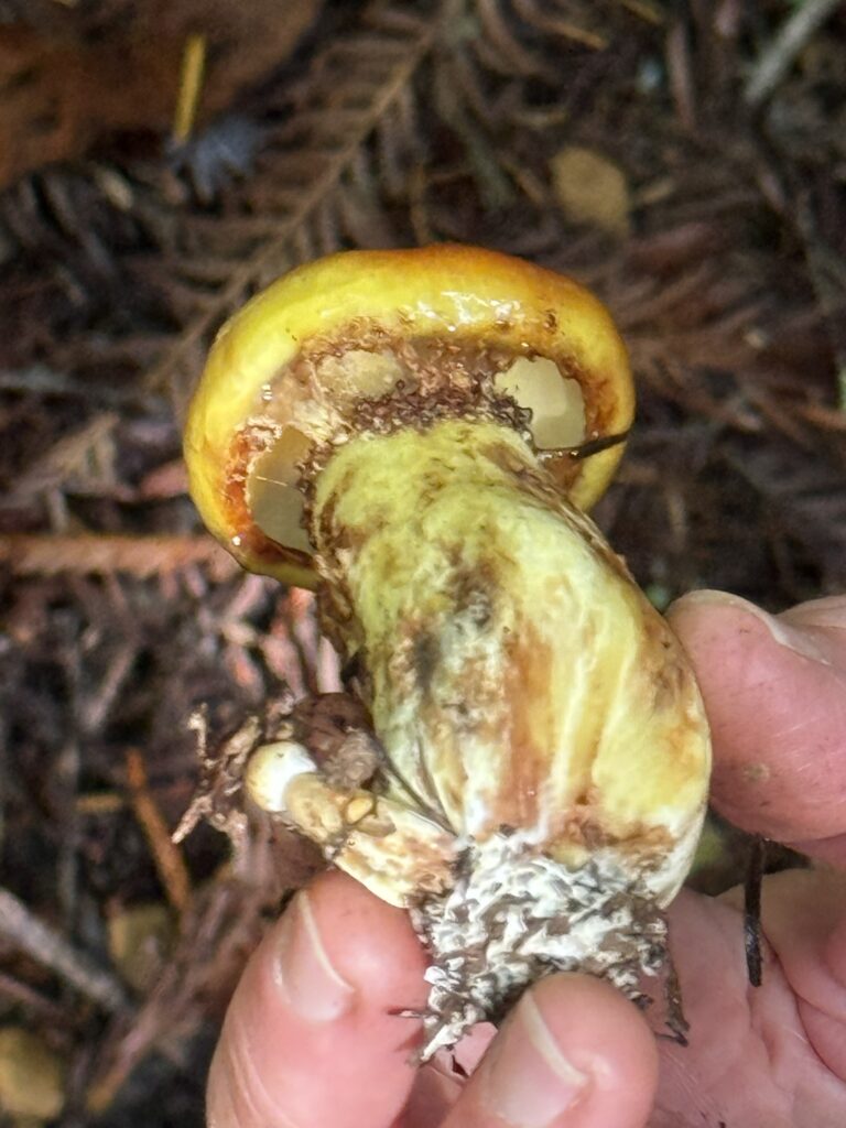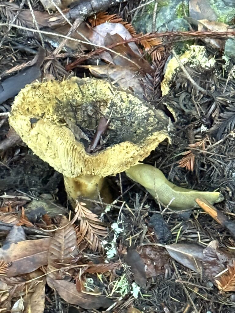 Monday, October 27, 2025 Manzanita Boletes Family Boletaceae Boletes Family Boletaceae Liver Bolete Suillellus amygdalinus Liver Bolete Suillellus amygdalinus Liver Bolete Suillellus amygdalinus Giant Viper’s-Bugloss Echium pininana (non-native) Giant Viper’s-Bugloss Echium pininana (non-native) Orange Bush Monkeyflower Diplacus aurantiacus Brittlegills Genus Russula Brittlegills Genus Russula Brittlegills Genus Russula Polypody Ferns Genus Polypodium Western Sword Fern Polystichum munitum California Alsia Moss Alsia californica Goldback Fern Pentagramma triangularis Family Omphalotaceae Cabbage Parachute Gymnopus brassicolens Cabbage Parachute Gymnopus brassicolens Cabbage Parachute Gymnopus brassicolens Genus Xerocomellus Genus Xerocomellus California Spikenard Aralia californica Cabbage Parachute Gymnopus brassicolens Cabbage Parachute Gymnopus brassicolens Button’s Banana Slug Ariolimax buttoni Ruffle Lichens Genus Parmotrema California Torreya Torreya californicaV Bonnets Genus Mycena Western Starflower Lysimachia latifolia Spikes Genus Gomphidius Spikes Genus Gomphidius Canyon Gooseberry Ribes menziesii Midnight Entoloma Entoloma medianox Western Sweet Coltsfoot Petasites frigidus var. palmatus Redwood Sorrel Oxalis smalliana Albino redwood Broad-leaved Helleborine Epipactis helleborine Slippery Jacks Genus Suillus Slippery Jacks Genus Suillus Phaeolus hispidoides ? Phaeolus hispidoides ? Genus Calocera Xerocomellus mendocinensis Oyster Mushroom Pleurotus ostreatus Oyster Mushroom Pleurotus ostreatus Slippery Jacks Genus Suillus Common Milkcaps Genus Lactarius Broad-leaved Helleborine Epipactis helleborine (non-native) Cabbage Parachute Gymnopus brassicolens Spikes Genus Gomphidius California Giant Salamander Dicamptodon ensatus California Giant Salamander Dicamptodon ensatus California Giant Salamander Dicamptodon ensatus California Giant Salamander Dicamptodon ensatus Coccora Amanita calyptroderma Chamise Adenostoma fasciculatum Umber Skipper Lon melane