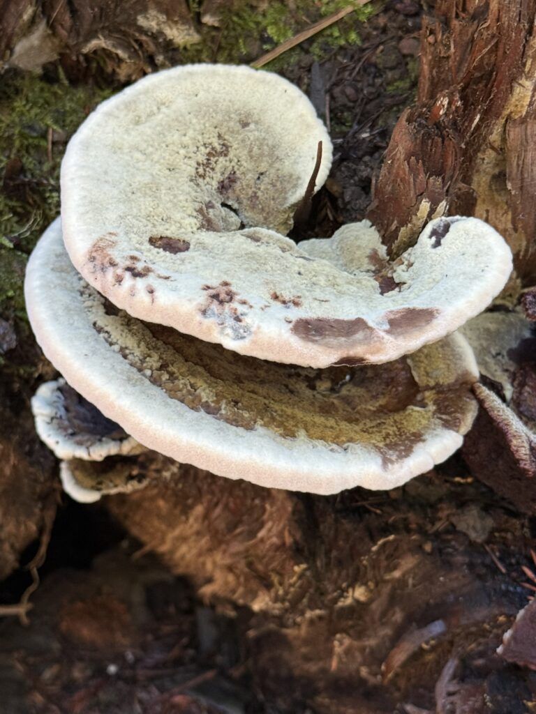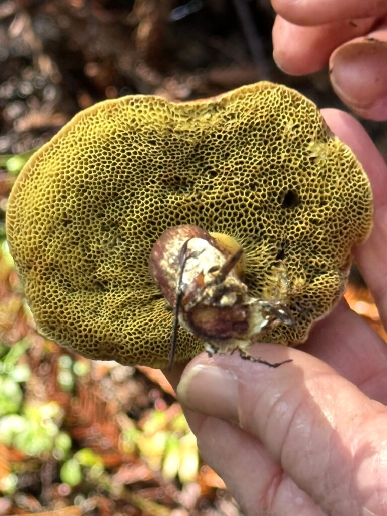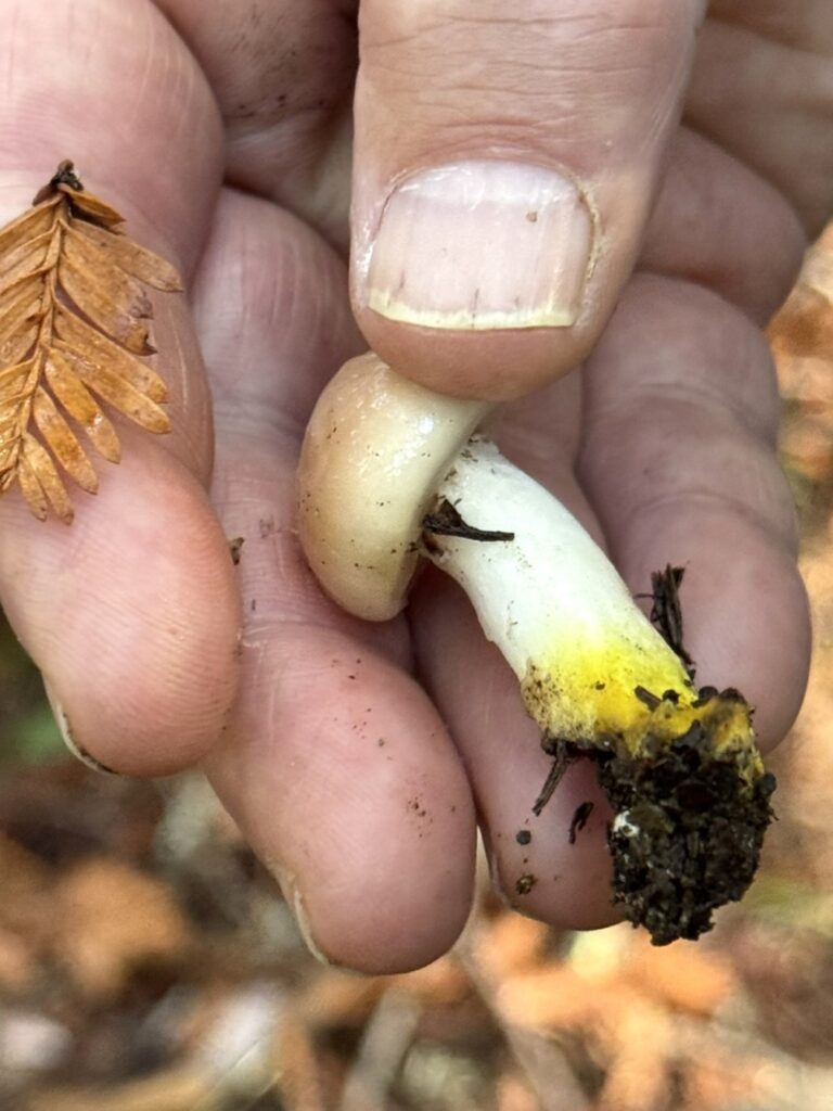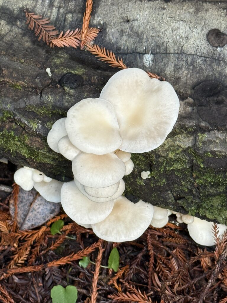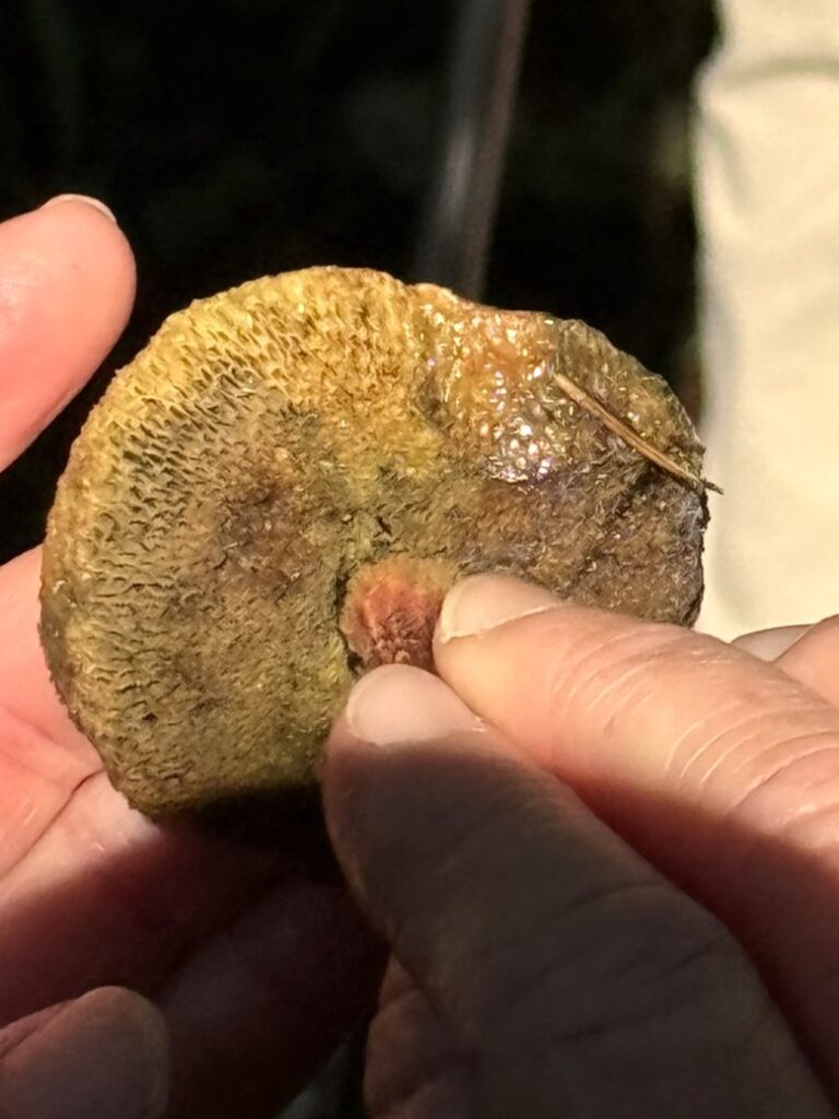 Monday, October 27, 2025 Manzanita Boletes Family Boletaceae Boletes Family Boletaceae Liver Bolete Suillellus amygdalinus Liver Bolete Suillellus amygdalinus Liver Bolete Suillellus amygdalinus Giant Viper’s-Bugloss Echium pininana (non-native) Giant Viper’s-Bugloss Echium pininana (non-native) Orange Bush Monkeyflower Diplacus aurantiacus Brittlegills Genus Russula Brittlegills Genus Russula Brittlegills Genus Russula Polypody Ferns Genus Polypodium Western Sword Fern Polystichum munitum California Alsia Moss Alsia californica Goldback Fern Pentagramma triangularis Family Omphalotaceae Cabbage Parachute Gymnopus brassicolens Cabbage Parachute Gymnopus brassicolens Cabbage Parachute Gymnopus brassicolens Genus Xerocomellus Genus Xerocomellus California Spikenard Aralia californica Cabbage Parachute Gymnopus brassicolens Cabbage Parachute Gymnopus brassicolens Button’s Banana Slug Ariolimax buttoni Ruffle Lichens Genus Parmotrema California Torreya Torreya californicaV Bonnets Genus Mycena Western Starflower Lysimachia latifolia Spikes Genus Gomphidius Spikes Genus Gomphidius Canyon Gooseberry Ribes menziesii Midnight Entoloma Entoloma medianox Western Sweet Coltsfoot Petasites frigidus var. palmatus Redwood Sorrel Oxalis smalliana Albino redwood Broad-leaved Helleborine Epipactis helleborine Slippery Jacks Genus Suillus Slippery Jacks Genus Suillus Phaeolus hispidoides ? Phaeolus hispidoides ? Genus Calocera Xerocomellus mendocinensis Oyster Mushroom Pleurotus ostreatus Oyster Mushroom Pleurotus ostreatus Slippery Jacks Genus Suillus Common Milkcaps Genus Lactarius Broad-leaved Helleborine Epipactis helleborine (non-native) Cabbage Parachute Gymnopus brassicolens Spikes Genus Gomphidius California Giant Salamander Dicamptodon ensatus California Giant Salamander Dicamptodon ensatus California Giant Salamander Dicamptodon ensatus California Giant Salamander Dicamptodon ensatus Coccora Amanita calyptroderma Chamise Adenostoma fasciculatum Umber Skipper Lon melane